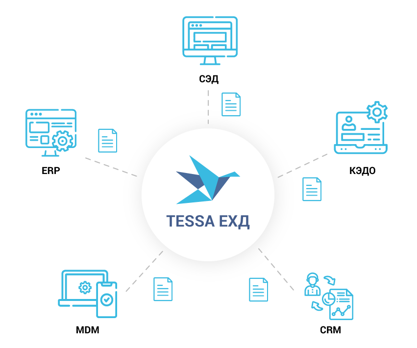TESSA ЕХД объединяет документы из разных источников в единое, безопасное корпоративное хранилище.
