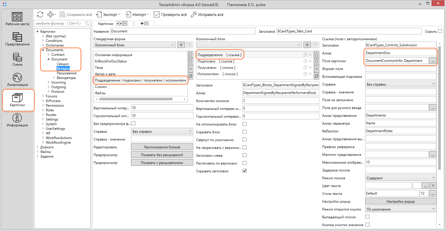 /adminбудет доступен только сотрудникам с уровнем доступа Администратор. - Для карточек с флагом Административный. Т.е. сотруднику с уровнем доступа Администратор будут доступны все глобальные настройки (Меню системы –> Настройки), редактирование всех типов ролей, объектов маршрутов (шаблоны этапов, группы, вторичные процессы, методы расширений).