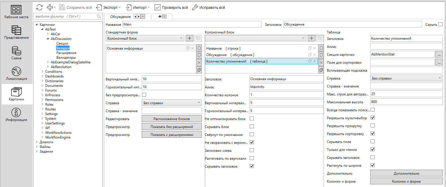 Далее необходимо создать тип карточки AbDiscussion в группе AbTest.