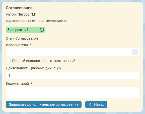 Для настроек завершения можно указать валидаторы для полей задания, например, валидатор обязательности заполнения поля Комментарий в форме завершения задания. Валидатор добавляется с помощью контекстного меню на настройке завершения.
