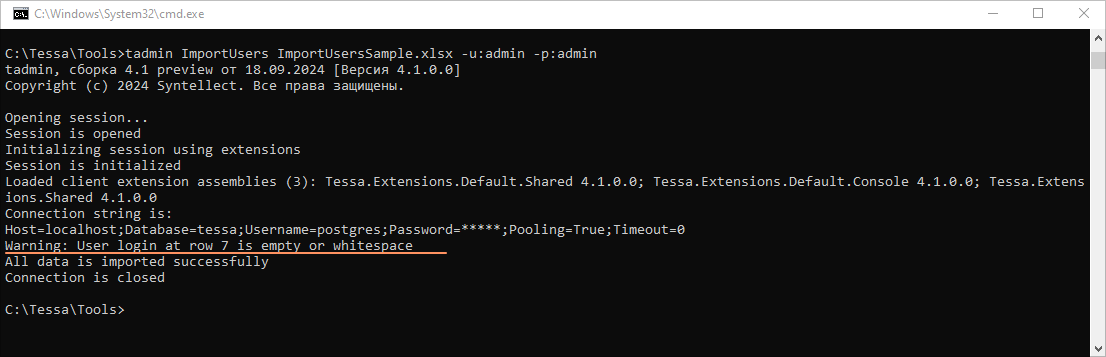 tadmin ImportUsers ImportUsersSample.xlsx. -