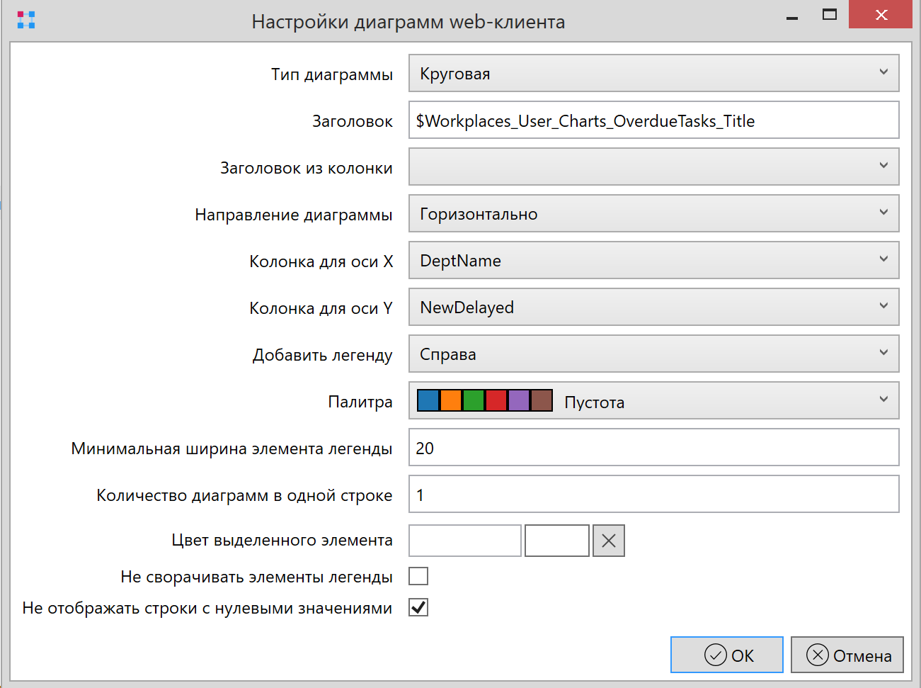 - Количество диаграмм в одной строке - указывается количество диаграмм при отображении в одной строке.