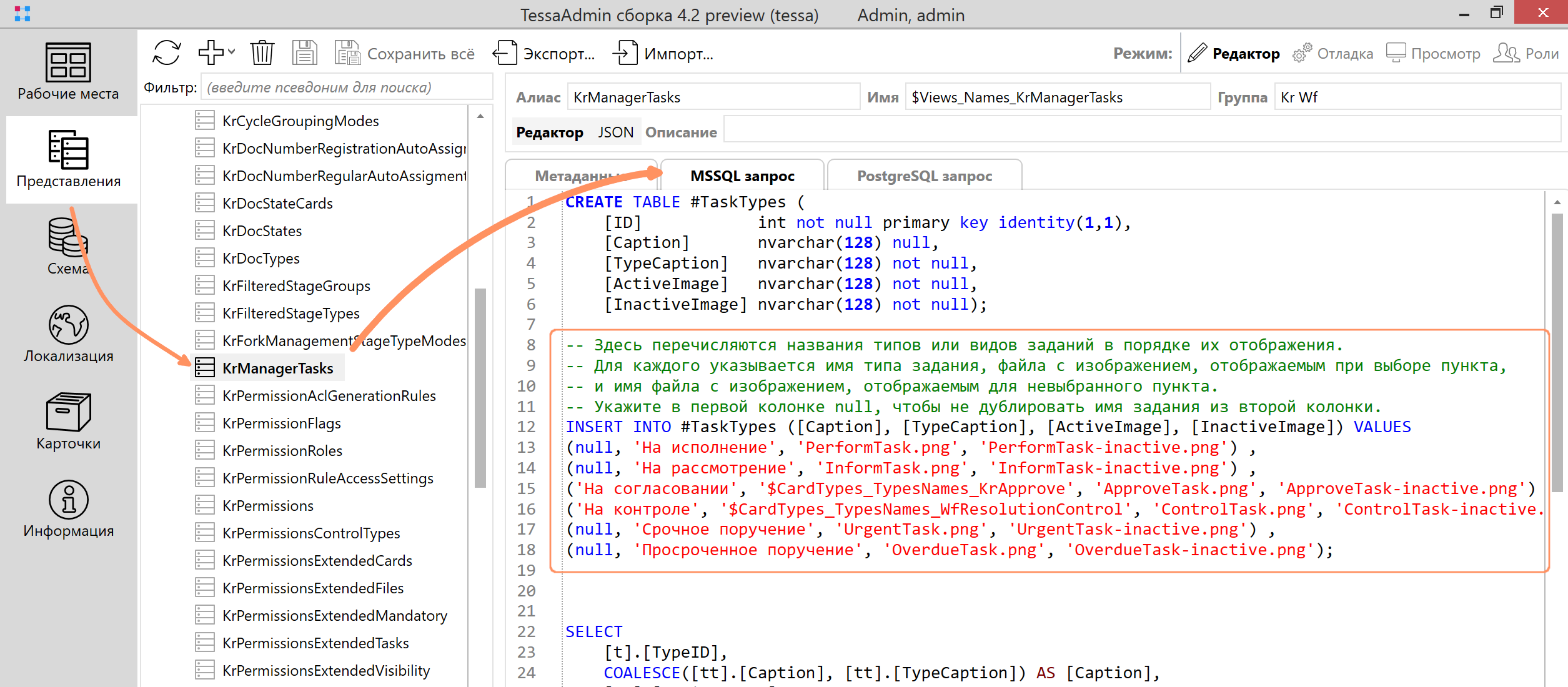 - Импортировать внедрённые в рабочие места представления.