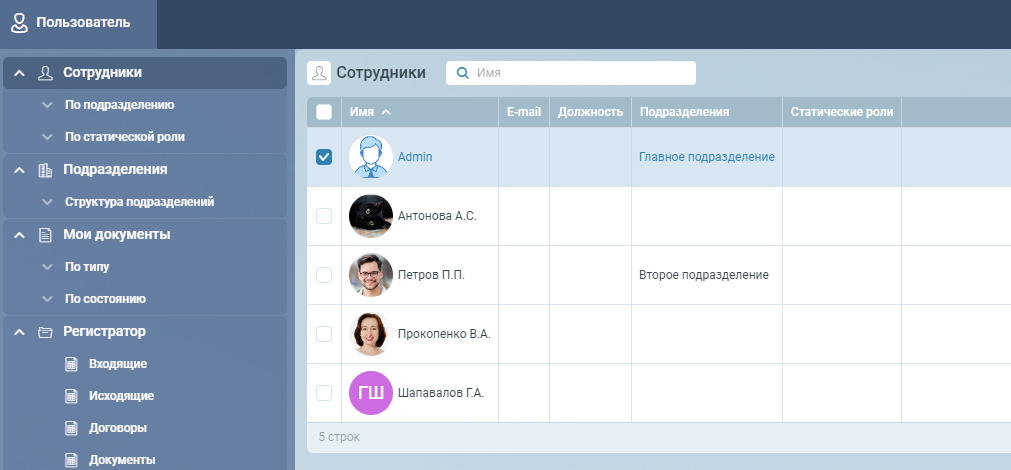 Если открыть представление Сотрудники, для которого было добавлено расширение, то можно видеть аватары всех сотрудников рядом с их именами:
