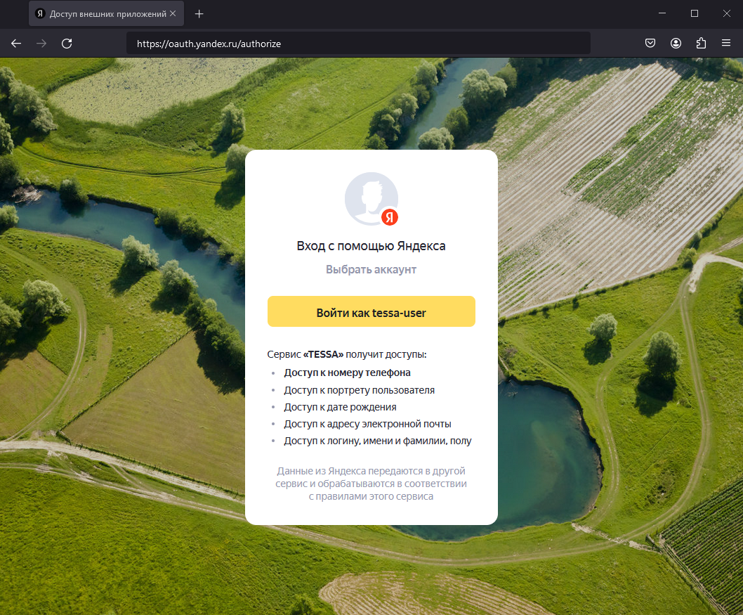 После успешной аутентификации провайдер может предложить предоставить доступ к данным пользователя для приложения: