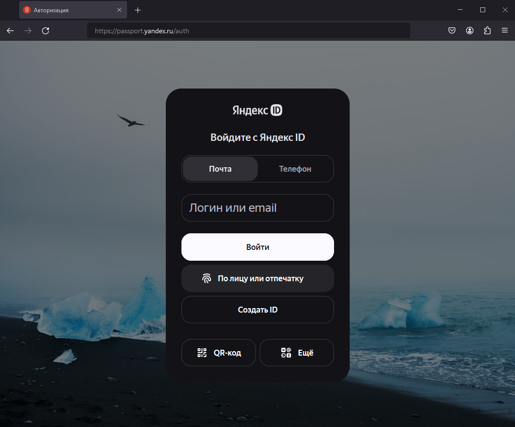 При выборе одного из провайдеров, например, Yandex будет произведено перенаправление на страницу провайдера для прохождения аутентификации во внешнем сервисе. Например, может быть отображено окно для выбора учётной записи и ввода логина и пароля: