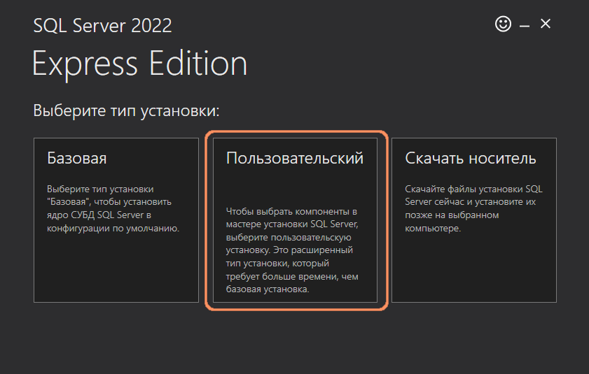 - Выбрать Пользовательский тип установки.