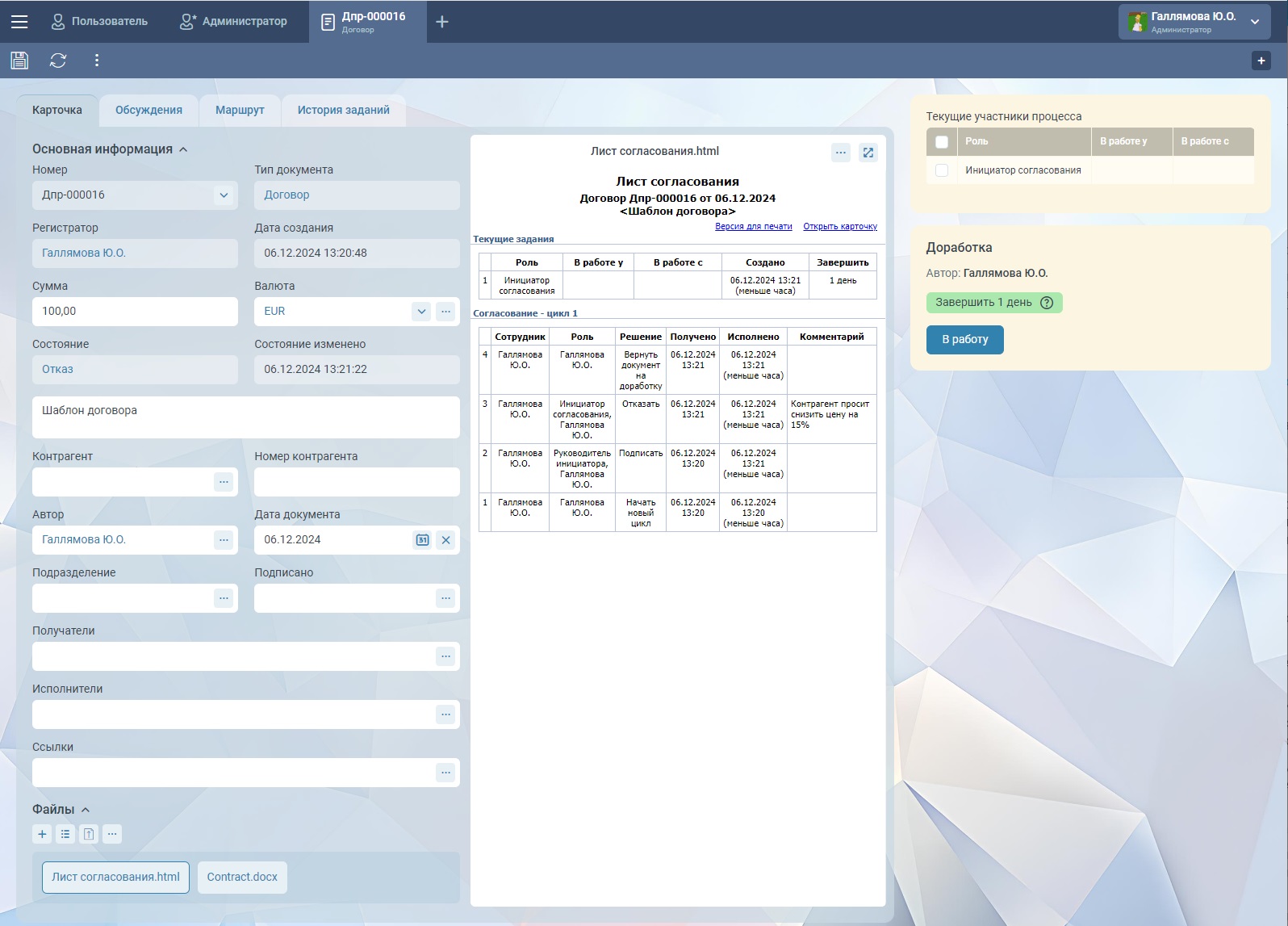 - Сразу в базовой поставке есть возможность пользователям самостоятельно настраивать маршрут согласования документа.