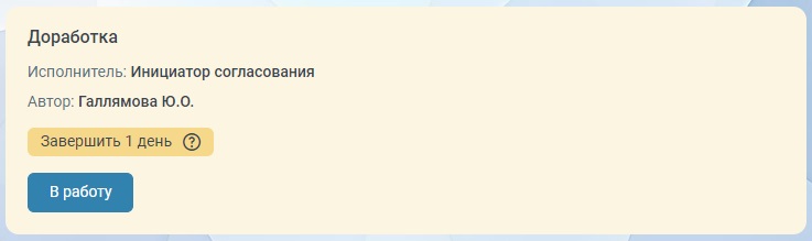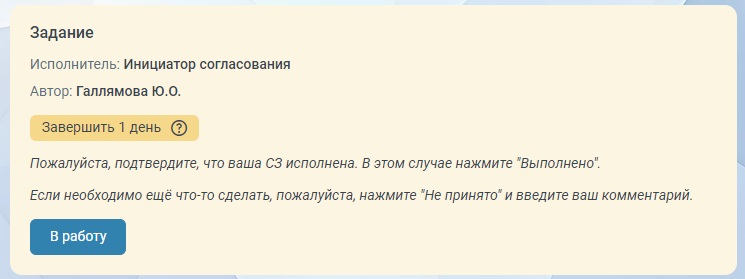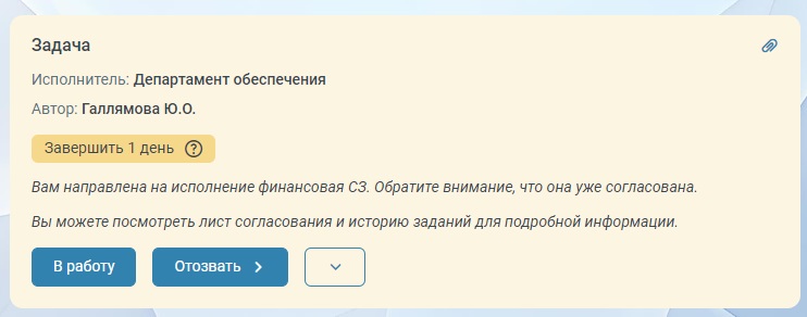 Если задание с информацией о процессе согласования не отображается, то редактор экземпляра процесса согласования можно открыть по тайлу Открыть схему согласования в меню системы.