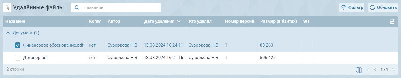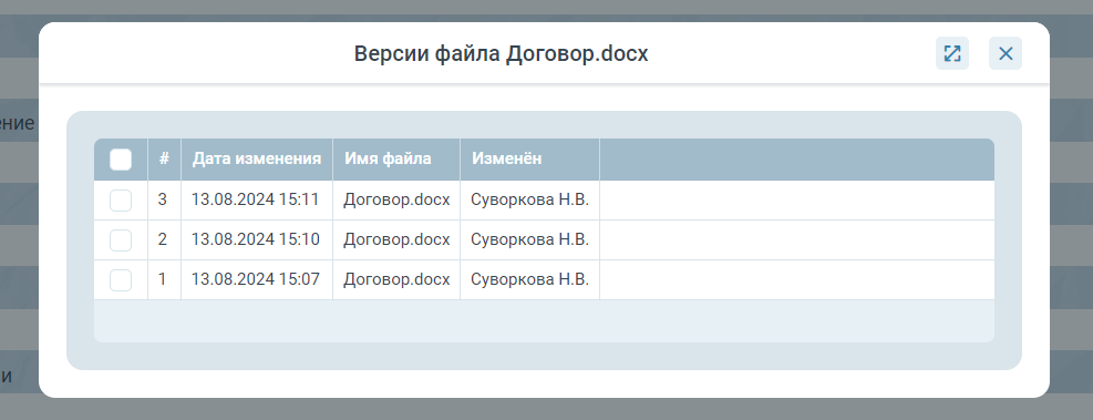 При открытии карточки документа в списке файлов может быть применена группировка и/или сортировка по умолчанию, настроенная администраторами системы. Подробное описание возможных видов группировки и сортировки находится в разделе Сортировка, группировка, фильтрация.