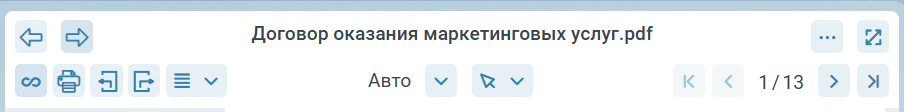 - кнопка печати документа. При нажатии открывается стандартное диалоговое окно браузера, в котором можно выбрать страницы для печати, указать количество копий, а также применить дополнительные настройки. Доступна печать документов следующих форматов: текстовых документов (формата PDF, TXT и HTML), изображений (формата JPEG, PNG).