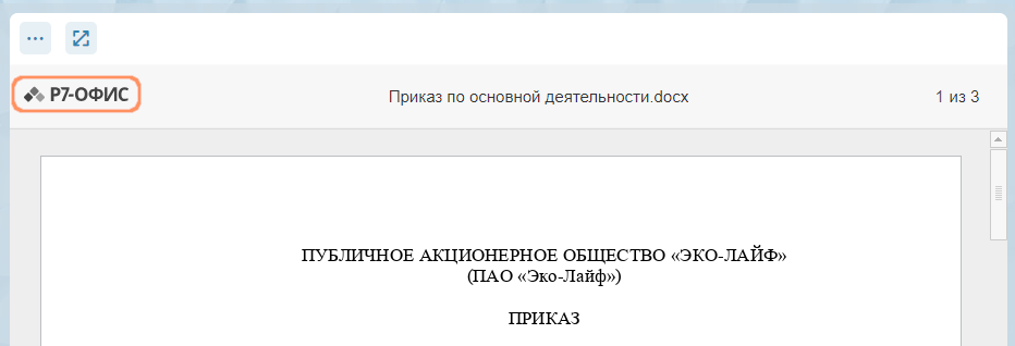 В системе для чтения, редактирования и предпросмотра документов также может использоваться Р7-Офис / OnlyOffice, если соответствующая настройка была активирована администратором системы. После ее активации в окне предпросмотра будет указано, что используется Р7-Офис.
