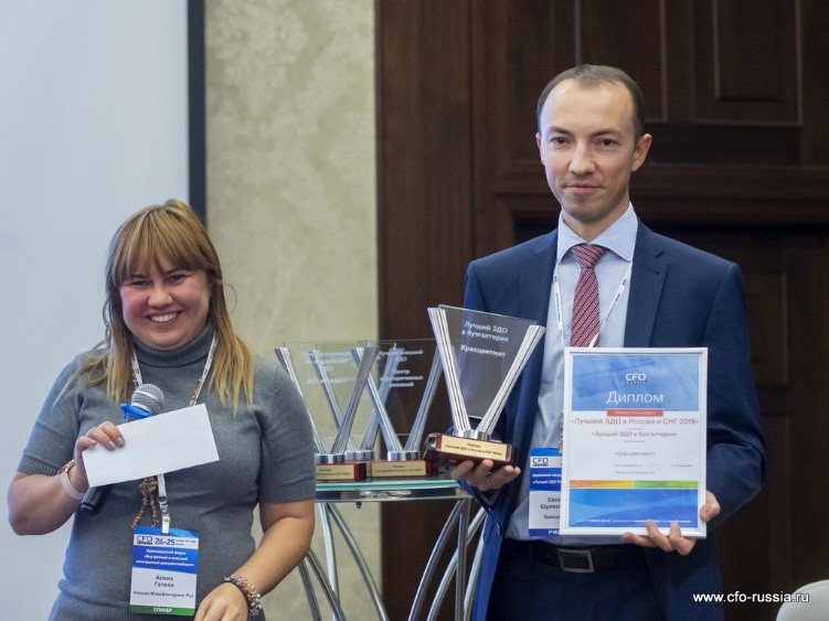В 2019 году команда CFO Russia при поддержке Prosperity Media определила победителей конкурса «Лучший ЭДО России и СНГ 2019». Придерживаясь главного принципа премии — профессионалы оценивают профессионалов, в состав жюри вошли руководители и директора с опытом работы по внедрению ЭДО. Проекты оценивали по следующим критериям: сроки внедрения проекта, охват документооборота, достигнутый эффект от внедрения, инновационные инструменты, которые использовались, и другие. Победителей выбирали по 6 номинациям среди 27 компаний-участников с самыми передовыми и масштабными проектами. Награждение прошло в рамках Одиннадцатого форума «Внутренний и внешний электронный документооборот».