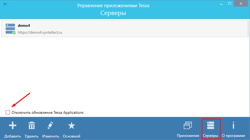 Отключить автообновление Tessa Applications у конкретного пользователя можно, выставив на вкладке “Серверы” соответствующий флаг: