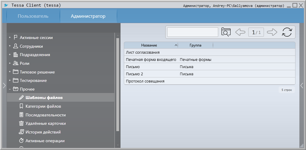 Просмотреть список всех шаблонов файлов в системе можно из рабочего места Администратора, папка Прочие - Шаблоны файлов: