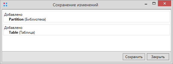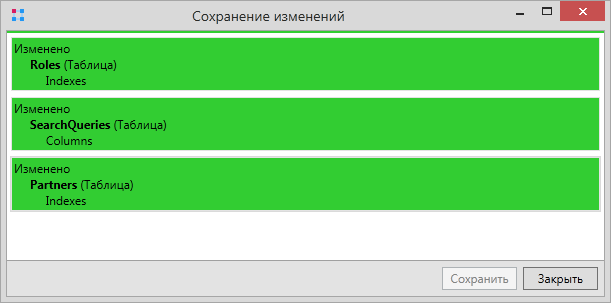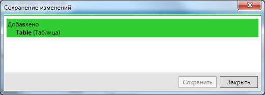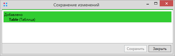 После того, как настройка таблицы будет завершена, необходимо её сохранить. Для сохранения нажмите “Ctrl+S”, затем в появившемся диалоговом окне со списком изменений нажмите “Сохранить”: