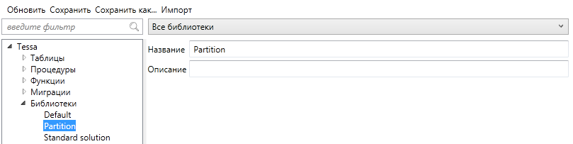 Все объекты, добавляемые и изменяемые в библиотеке, сохраняются в отдельную подпапку с именем библиотеки внутри папки “Partitions”. Это позволяет изолированно обновлять или переносить библиотеку между разными версиями платформы и проектными решениями.