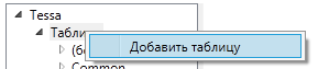 Для создания таблицы вызовите контекстное меню (щелкнув правой кнопкой мыши по узлу Таблицы) и выберите пункт “Добавить таблицу”: