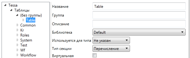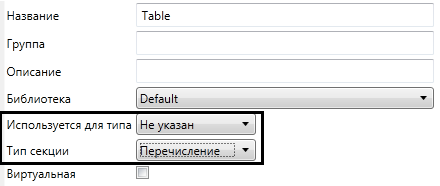 Используется для типа - тип объекта, с которым ассоциированы данные в создаваемой таблице. Указывается в зависимости от типа объекта системы, для которого предназначена таблица