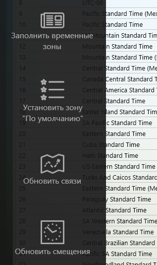 “Обновить смещения” - проверяет и исправляет смещения в ролях, согласно справочнику из карточки временных зон.