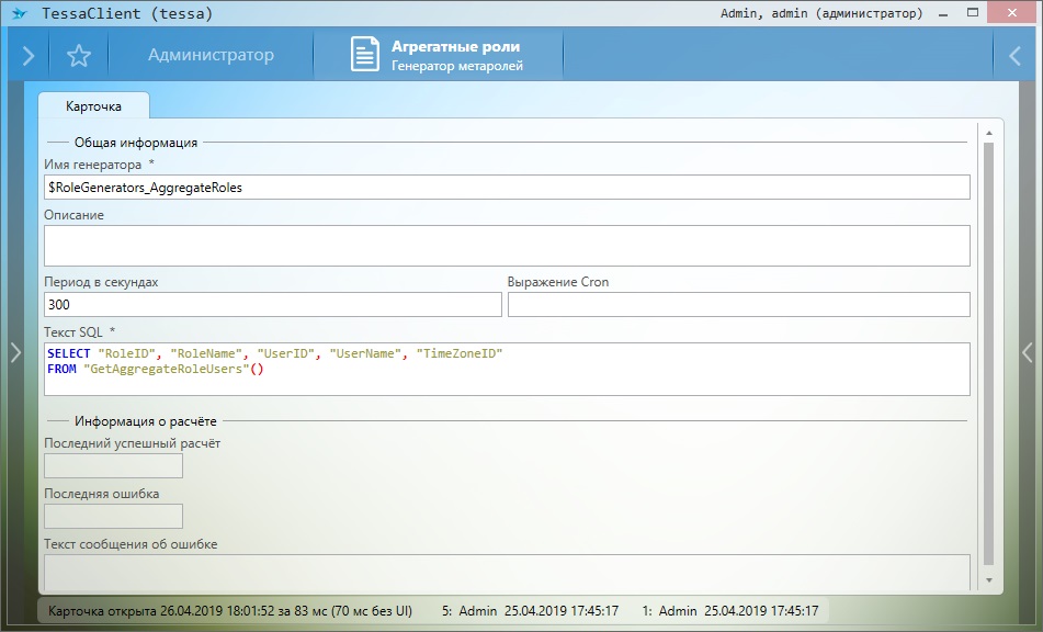 В карточках ролей имеется поле для указания временной зоны. В большинстве ролей это поле позволяет выбрать временную зону из справочника, если в карточке настроек временных зон указанно, что можно редактировать временные зоны в ролях. В карточках метаролей и ролей задания редактирование временной зоны невозможно, т.к. зона в них определяется при создании или пересчёте роли.