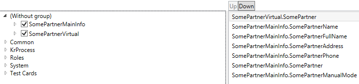 На вкладку карточки добавим колоночный блок с алиасом SomePartner, выводом в 2 колонки и следующими контролами в заданном порядке: