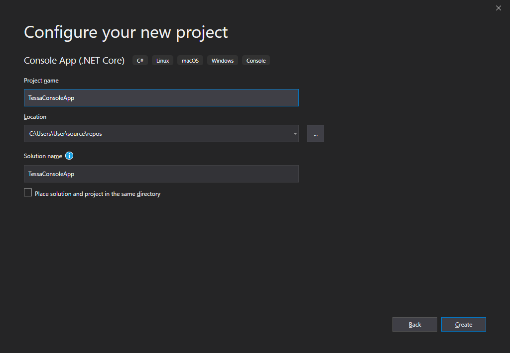 В папке bin\Publish будет расположен собранный проект, который можно скопировать в любую папку и использовать для соответствующей ОС (64-битной Windows или 64-битной Linux). Никаких требований к компьютерам, на которых будет запускаться консольная утилита, не предъявляется, т.е. устанавливать .NET Framework или .NET Core не требуется. Поддерживаемые операционные системы определяются используемой платформой .NET Core, например, для версии .NET Core 3.1 требования перечислены в документации Microsoft. Если вы используете API TESSA, то обратитесь к руководству по установке и руководству по установке на Linux для системы TESSA.