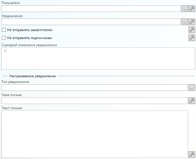 Не отправлять заместителям (значение типа boolean) - определяет, нужно ли при формировании списка получателей уведомления учитывать замещения сотрудников.