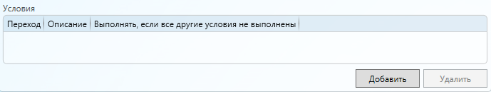 Условие выполнения (значение списка условий выполнения) - определяет правило, по которому происходит формирование списка переходов по настройкам данной строки таблицы при завершении заданий с данным вариантом.