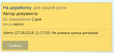 Роль - Автор документа. Мы хотим, чтобы задание на доработку отправлялось автору документа.