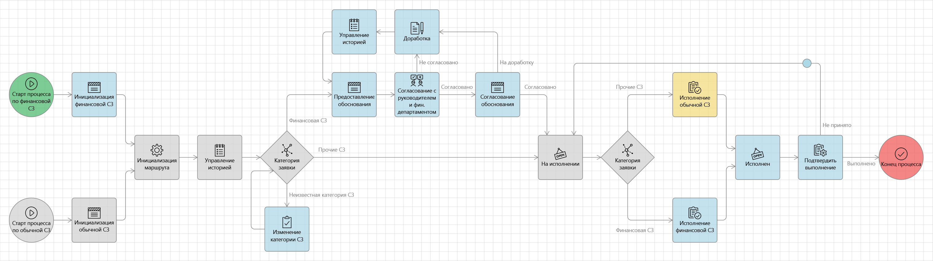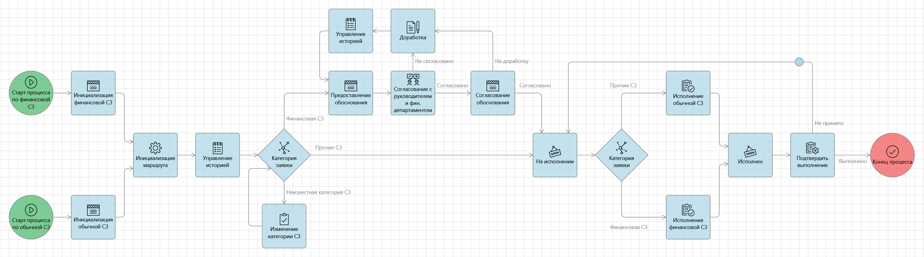 Из нового узла добавим связь в узел Доработка. Процесс примет примерно следующий вид: