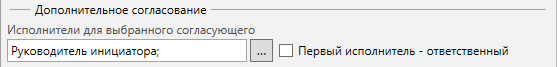 Исполнители для выбранного согласующего (значение из справочника ролей) - список сотрудников или ролей, кому будет отправлено задание дополнительного согласования. Данные задания отправляются одновременно с родительским заданием согласования. Решения дополнительных согласующих заносятся в историю заданий и лист согласования, однако не влияют на итоговый результат процесса согласования.