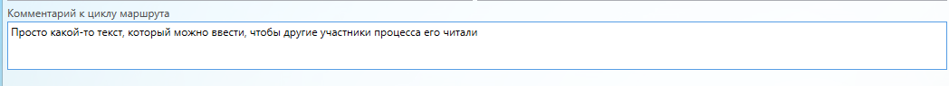 “Комментарий к циклу маршрута” – информационное поле, в котором указывается информация к циклу маршруту, доступная для участников процесса.