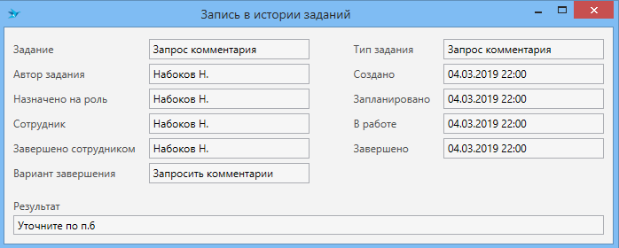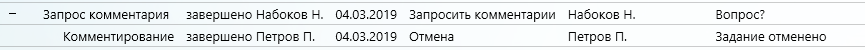 • “Завершено сотрудником” – сотрудник, выполнивший действие;