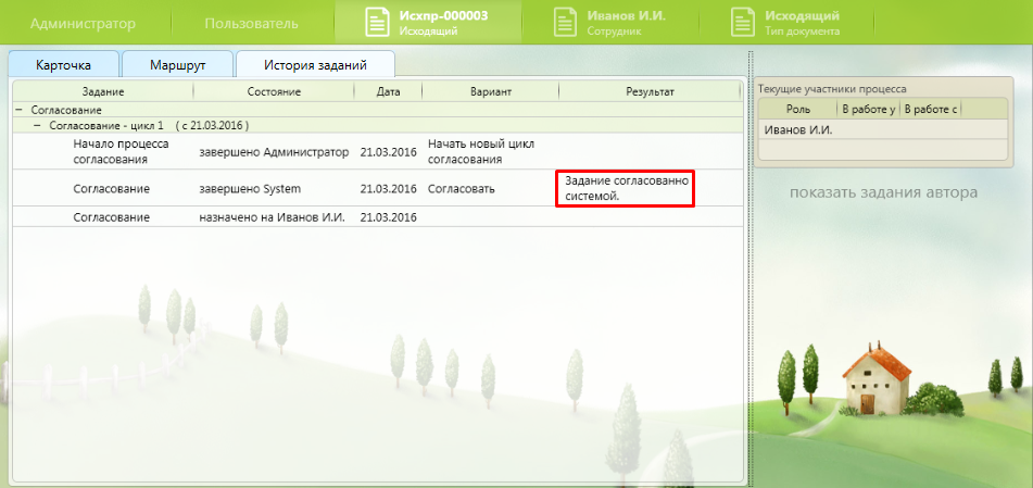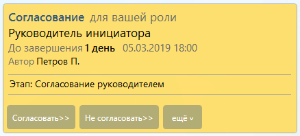• независимо от настроек этапа согласования - задание на доработку приходит в случае, если по маршруту хотя бы один согласующий вынес отрицательное решение;