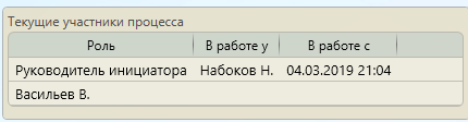 Для каждой карточки договора при активном процессе в области заданий (правая область карточки) отображается информация по текущим участникам.