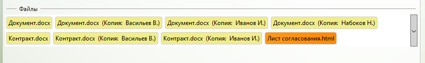 Для каждого согласуемого договора автоматически формируется лист согласования. Лист согласования приложен на основной вкладке карточки в разделе “Файлы”.