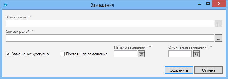 • “Начало/Окончание замещения” – срок замещения указывается, если это не постоянное замещение.