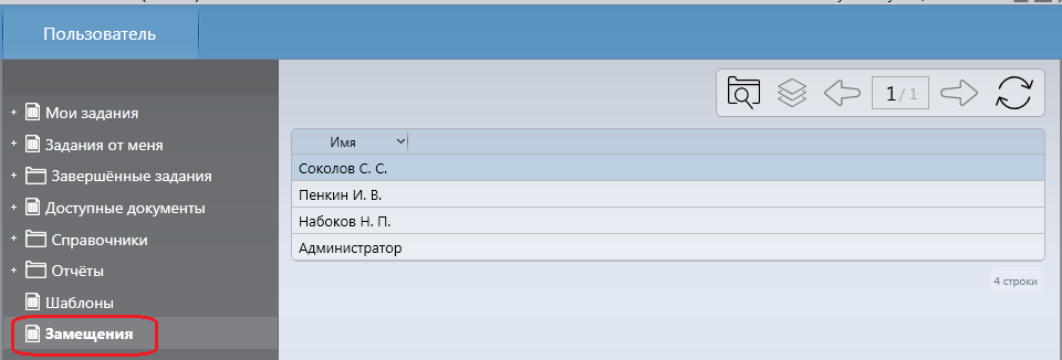 У каждого пользователя системы есть возможность добавить своих заместителей, которые, в случае отсутствия замещаемого сотрудника, смогут выполнить за него задания.