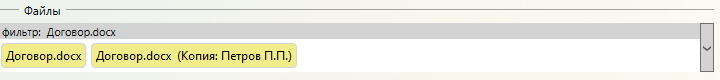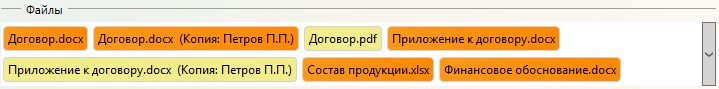где в разделе “Согласуемые документы” отображаются все документы, которые были добавлены в карточку, за исключением копий файлов. При этом в данном разделе под названием файла отображается категория файла (если для данного типа карточки включены категории и у файла есть категория):