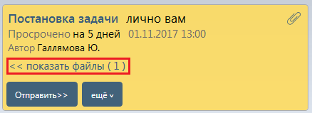 которая говорит о том, что в карточку задачи текущим пользователем уже были приложены файлы. По данной ссылке снова можно перейти в карточку задачи.