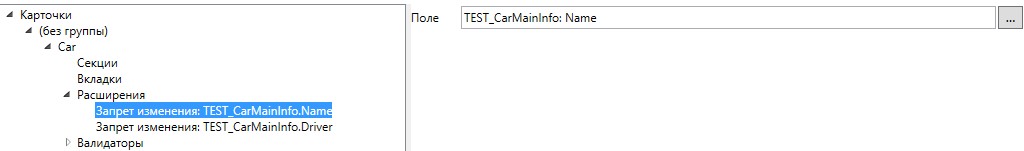 Расширение типа для запрета изменения колонки (комплексной или физической) после первого сохранения карточки. Позволяет указать колонку в строковой секции, которую можно будет редактировать только при создании карточки. Все связанные с такой колонкой контролы после первого сохранения карточки будут доступны только для чтения. Данное расширение удобно использовать вместе с валидатором на обязательность заполнения данной колонки.