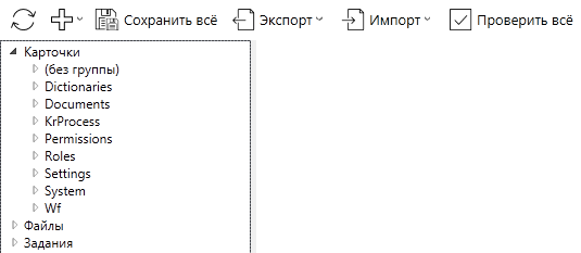 Для экспорта типа карточки необходимо выбрать в дереве нужный тип и далее с помощью контекстного меню или кнопки на панели инструментов выполнить экспорт: