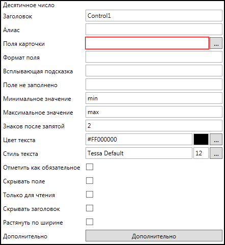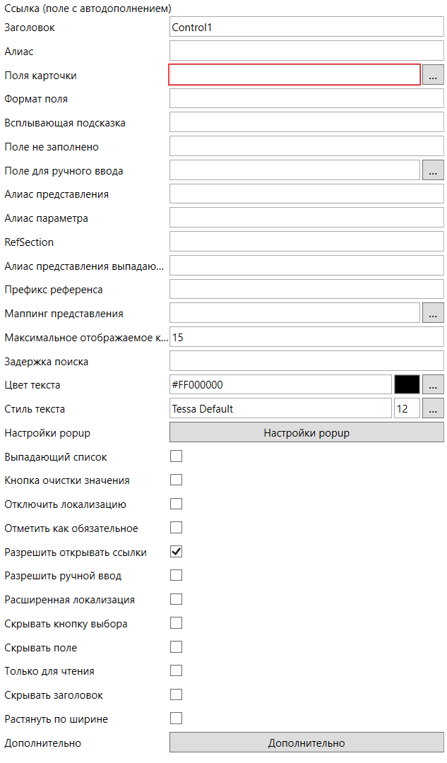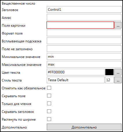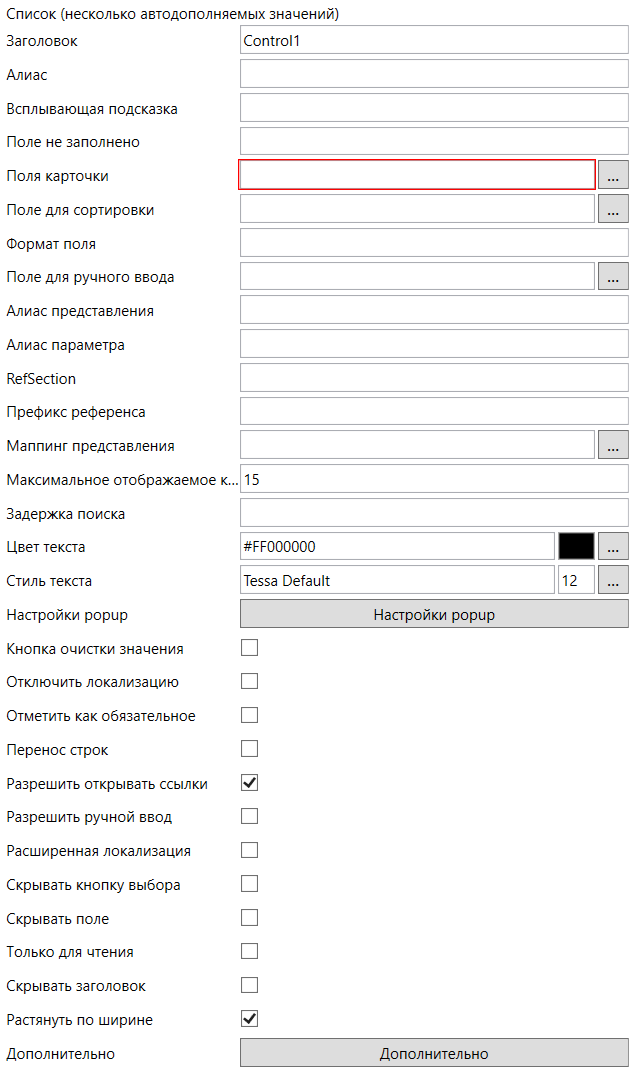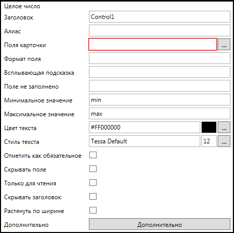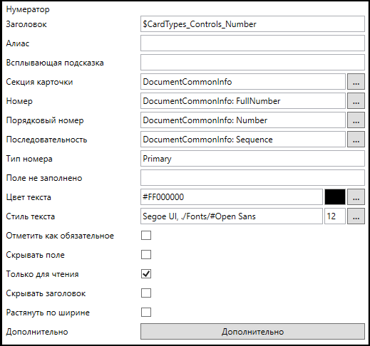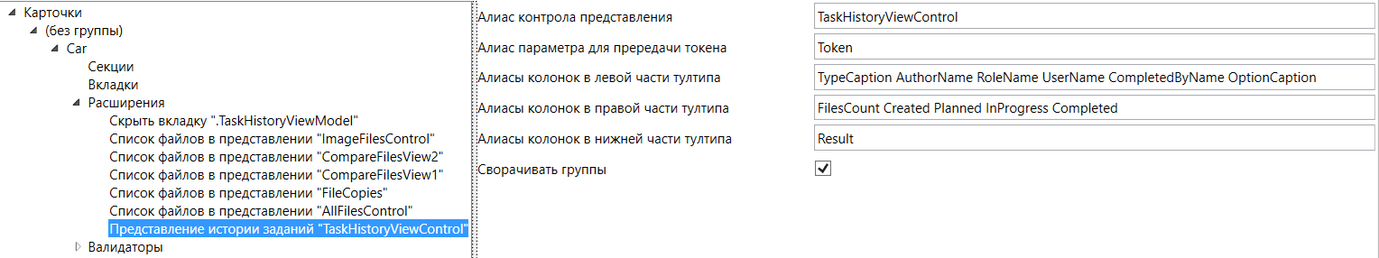 - Алиас контрола представления - единственное обязательное поле расширения. Здесь необходимо указать уникальный псевдоним (алиас) соответствующего элемента управления формы карточки или задания.