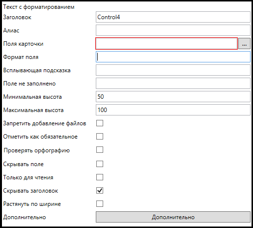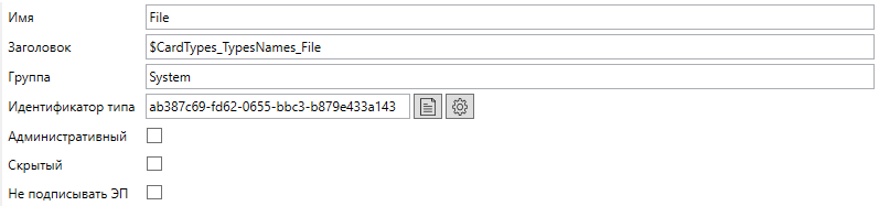 Тип файла дополнительно (помимо стандартных, описанных в разделе создания типа карточки) имеет следующие настройки: