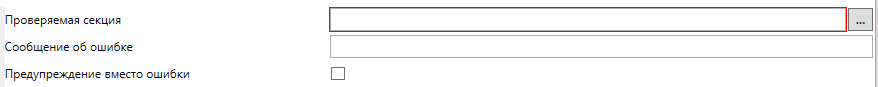 Валидатор “Непустая секция” предназначен для указания обязательности заполнения секций. С помощью него указывается обязательность заполнения таблиц, списков и прочих коллекционных секций.