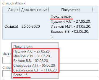 Выбранные карточки отобразятся в списке, где можно выполнять следующие действия: