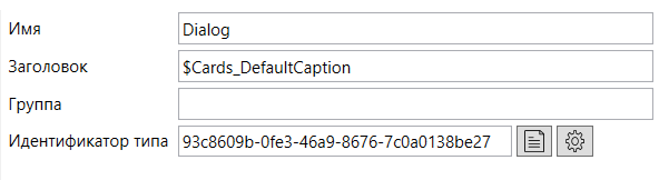 - Имя диалога - служебное имя диалога для обеспечения возможности работы с ним из расширений. Используется только при открытии карточки в диалоговом режиме. Поле является опциональным.
