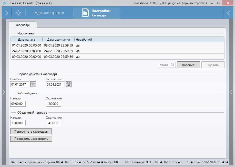 После успешной миграции, т.к. мы предварительно настроили веб сервис на подключение к новой базе, можно сразу запускать приложение TessaClient и убедиться, что база работоспособна, а также все данные перенесены.