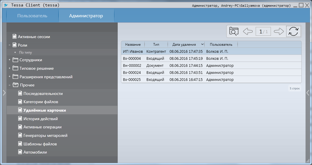 Удаление карточки из корзины - удаление карточки из представления “Удаленные карточки” или в случае удаления карточки сразу без возможности восстановления (доступно только для Администраторов).